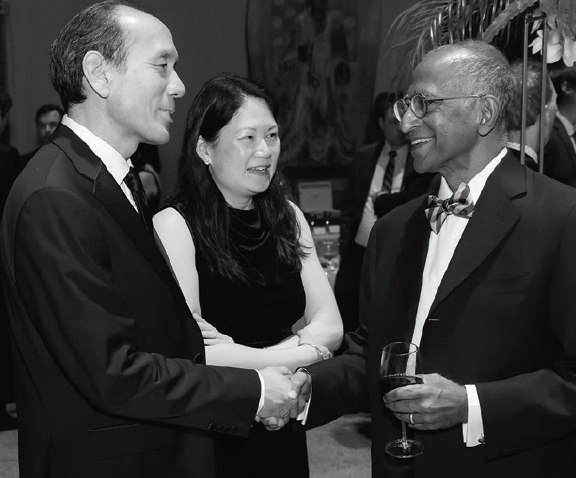 | Dr. Hsu, his wife, Vatinee Bunya, MD, and Dr. Hsu’s mentor, Arunan Sivalingam, MD. (Image credit: Kevin Caldwell) |